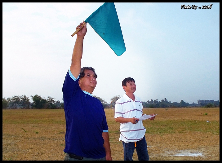กรรมการชูธงระหว่างการปาถุงแป้ง ..