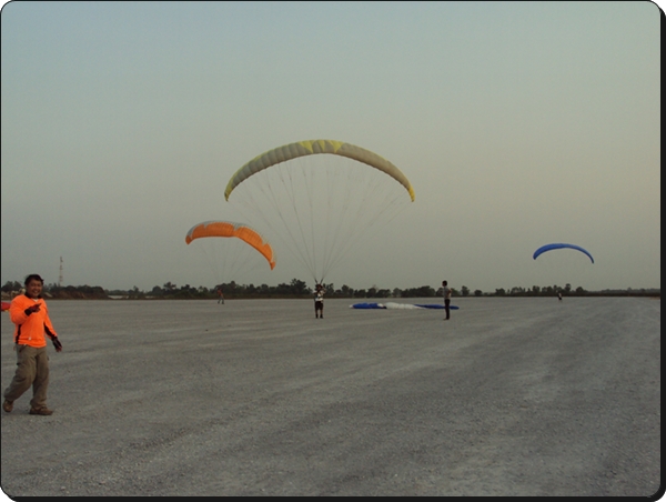 2 วันที่ผ่านมาตอนเย็นบินไม่ได้เลย ลมยังกับพายุ จนมืดยังไม่เบาให้เลย แต่ตอนเช้าบินได้ทุกวัน 2 วันไปรอที่สนามบินไม่ได้ ก็เลยมาตั้งร่มออกกำลังกายแก้เซ็งกันตามภาพ