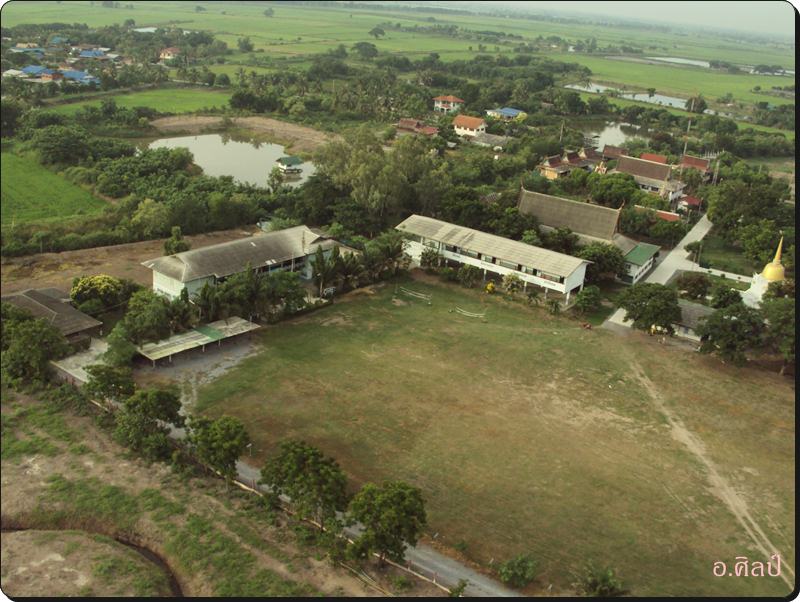 อีกภาพโรงเรียนวัดไผ่เดี่ยวใกล้ๆ หน่อย พอถึงตรงนี้ เหมือนไม่มีอากาศอยู่เลย เครื่องตกวูบอย่างเร็ว เราก็เลยรีบอัดเครื่องให้สูงขึ้นให้เท่าเสาส่งดีแทค