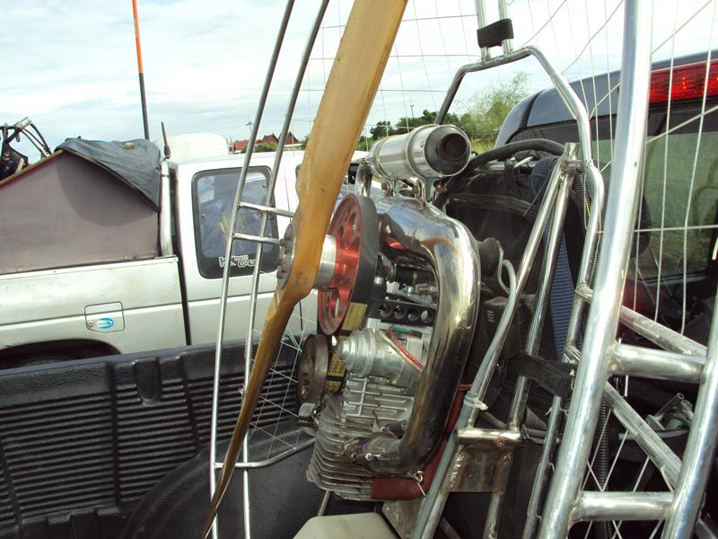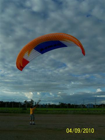 โอ้ว...ไม่มีใครมาต่อกระทู้เลย เมื่อวันอาทิตย์ไปงานขึ้นบ้านใหม่เจ้าโจ๊ก กาญจนบุรี ไม่ได้ถ่ายภาพมาให้ดูเลย พี่น้องร่มบินไปกันมากมาย แต่.....บินกันไม่ได้เลยลมแรงมากๆ อ้อ....มี 2 ร่มที่บินมาคือ อ๊อต บ่อพลอย และชนะชล บินจากบ่อพลอย แต่สู้ลมไม่ไหว อ๊อตลงกลางทางก่อน แต่พอแหงนไปดูชนะชล ยังไม่ลง ก็ขึ้นต่ออีกครั้ง แต่ก็ไม่ถึงเป้าหมาย เพราะลมแรงมาก ชนะชลบอกว่าต้องบินสูงเกิน 300 เมตรถึงจะพอบินได้ แต่ก็มีโยกเหมือนกัน เลยอัดขึ้นอีกไปอยู่ที่ความสูง 500 กว่าเมตรถึงจะนิ่ง เจ้าอ๊อตบอกขึ้นไปไม่ไหวระดับนั้น เครื่องไปไม่ไหว ของชนะชลซาเล้ง 250 CC สบายมากๆ ไม่รู้เจอนางฟ้าหรือเปล่าก็ไม่รู้