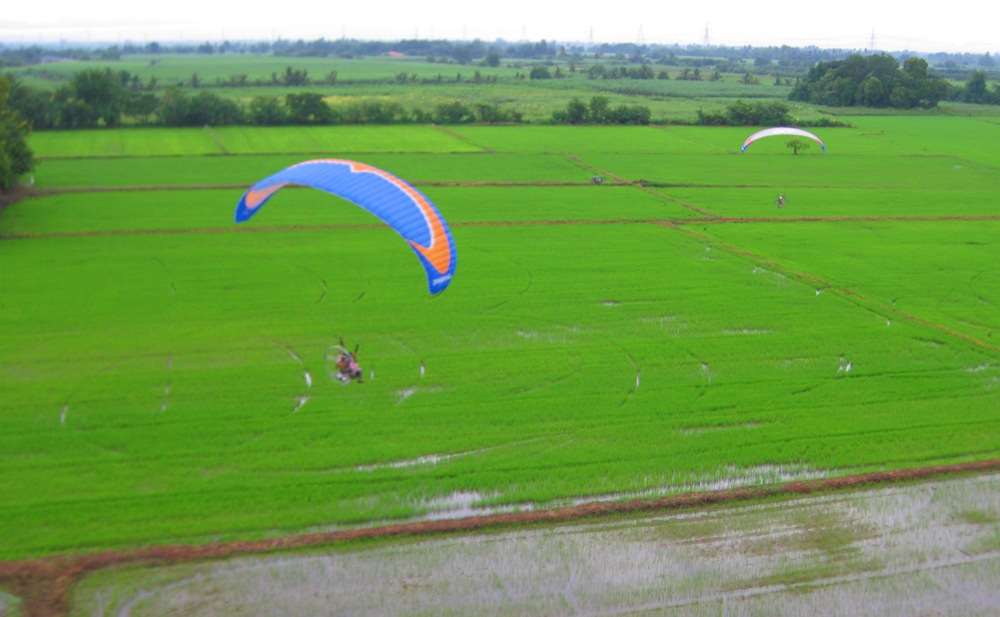 เมื่อเช้าวันอาทิตย์ รวมพลบินไปเที่ยว 5ร่ม มีพี่ชุ พี่แขก พี่เล็กGT ต้น และก็ผม บินเล่นในสนามเทศเครื่อง 1ร่ม คือพี่หรอ พี่แขกบินตามมาแล้ว