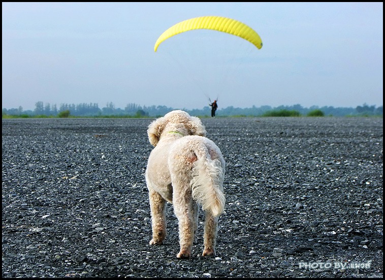 เมื่อขึ้นไปแล้ว เราก็บินตามไปเป็นเพื่อน แต่บินประมาณ 15 นาทีเพราะน้ำมันมีน้อยไม่กล้าบินนาน เห็นเอกบินอยู่พักเดียว เราก็มองซ้าย ขวา วนตามหา เอ้า..หายไปไหนหว่า...โน่น...ไปลงริมสนามเกือบตกน้ำอีกไม่กี่เมตร ไปเจอดินเปียกเห็นโคลนติดหัวเข่ามา ก็แสดงว่าคงลงแบบเดิมอีกแล้ว......5555