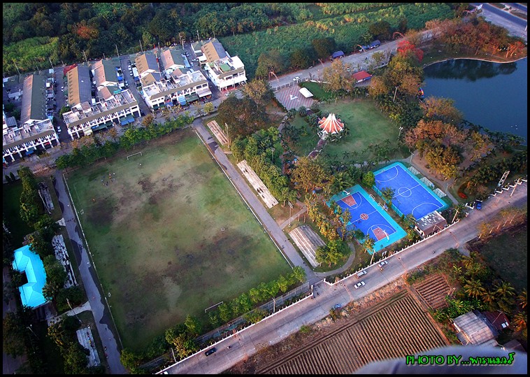 บินข้ามฝั่งมายังบ้านท่าเรือ นี่คือสวนเฉลิมพระเกียรติฯ .....ครั้งเมื่อพวกเราบินเดินทางจากอ้อน้อยมากาญจนบุรี สนามฟุตบอลแห่งนี้ คุณยศมะขามเทศ เคยมาใช้บริการ...