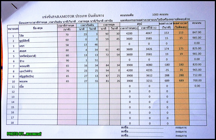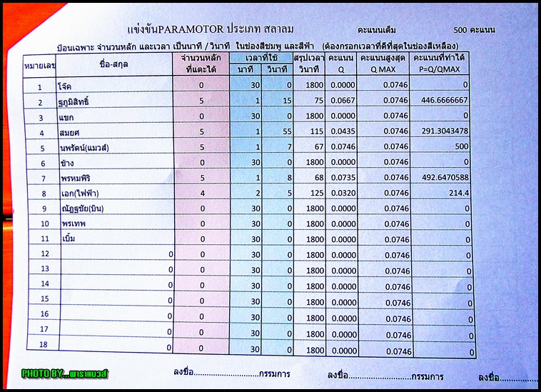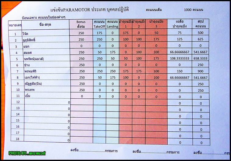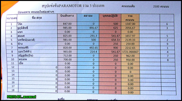 ผลคะแนนการแข่งขันสนามสุดท้ายของชมรมร่มบินนครปฐม