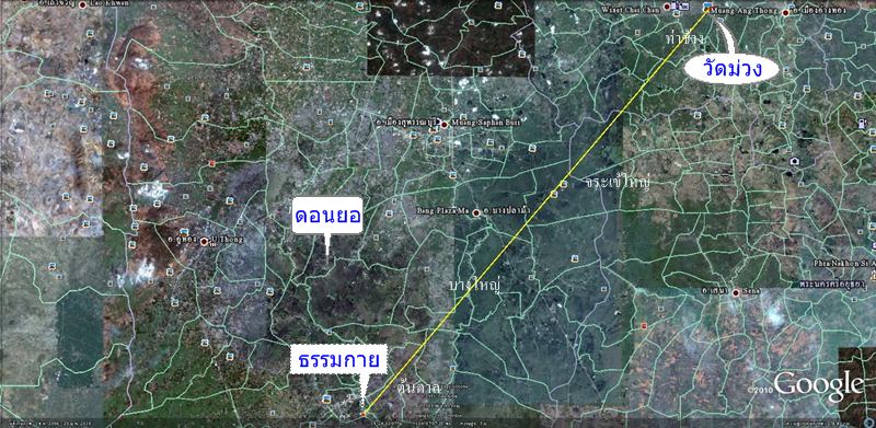 ค่าพิกัดฉากภูมิศาสตร์ตำแหน่งวัด N 1614102 E 648877 (ลงไม่ได้) ตำแหน่งที่ลงได้ดีที่สุด N 1614932 E 650752 ห่างจากวัด 2.050 ก.ม.ห่างจากร้านข้าว 2.679 ก.ม. ตำแหน่งที่ลงได้ดีเช่นกันอยู่หน้าร้านที่เราจะกินข้าว N 1612278 E 650384 ท้องทุ่งนากว้างใหญ่ไพศาล ซาเล้งลงได้สบาย เท้าแตะพื้นขาวอวบได้ทันที่ ห่างจากวัด 2.366 ก.ม. อีกตำแหน่งตลาดนัด N 1614669 E 649009 ห่างจากวัด 0.582 ก.ม. ห่างจากร้านเหล้าเอ้ยไม่ไช่ร้านกินข้าว 2.758 ก.ม. เลือกเอาอยากลงไหน ผมขอเสนอลงร้านข้าวดีที่สุด เราบินมาไกลโพ้น การจะทำอะไรต่อไปต้องทานอาหารก่อน ทหารจะออกรบต้องพร้อมทั้งพลังกายใจ อาวุธ