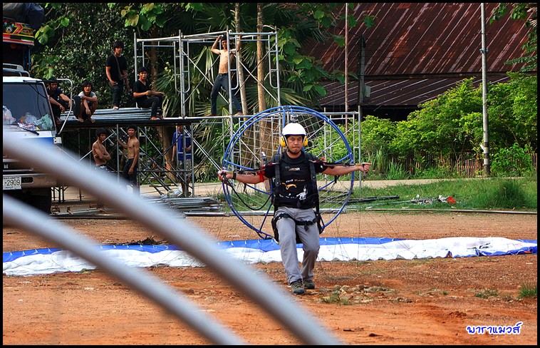 ตอนเช้า ได้สนามลานเอนกประสงค์บริเวณวัดนั่นและ ใช้เป็นที่เทคอ๊อฟและแลนดิ้ง