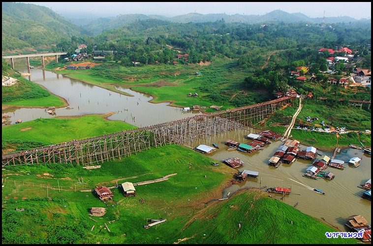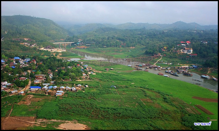 13 - 14 เม.ย.54 พาครอบครัวไปเที่ยวพักผ่อน เลยอาศัยเขาติดรถไปด้วย เพราะตั้งใจอยากขึ้นบินถ่ายภาพบรรยากาศที่นั่น อากาศดี วิวสวย ระยะทางจากตัวเมืองกาญจน์ถึงอำเภอทองผาภูมิ 140 กม. และเดินทางต่อไปยังอำเภอสังขละบุรีอีก 70 กม. เป็นทางเส้นเล็ก รถวิ่งสวนกัน เป็นทางขึ้นลงเขาตลอดเส้นทาง ขับรถเพลิดเพลิน ชมทิวทัศน์สองข้างทาง แวะพักทานอาหารข้างน้ำตกเกริงกระเวีย หรือลำธารที่อู่ล่อง