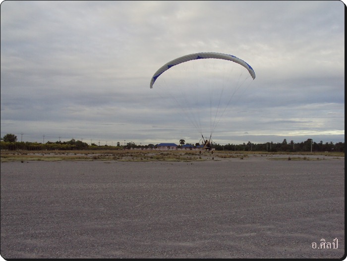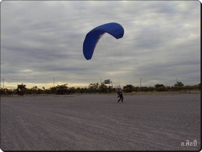 เช้านี้ลมไม่ปกติ ความเร็วน่าจะ 7.3 กม.: ชม. ขึ้นไปก็ไม่สนุกเท่าไร ผมเลยไม่ขึ้น ให้มือฉมัง 3 ร่มขึ้น ได้แก่ พิชัย เดฟ เสริม พิชัยไปก่อนร่มแรก