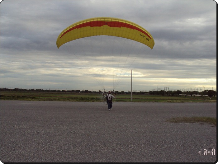 หายไปเงียบครึ่งชั่วโมงกว่าไปวนรอบสุพรรณบุรี ที่อยู่สนามก็คอยอยู่ว่าจะต้องตามไปเก็บหรือเปล่า แต่ขึ้นไป 15 นาทีลมก็เบาลง ขึ้นทีหลังแต่มาถึงร่มแรก เล่นเอาบรรดาบรมครูแตกตื่นบินกันให้ว่อนไปหมด