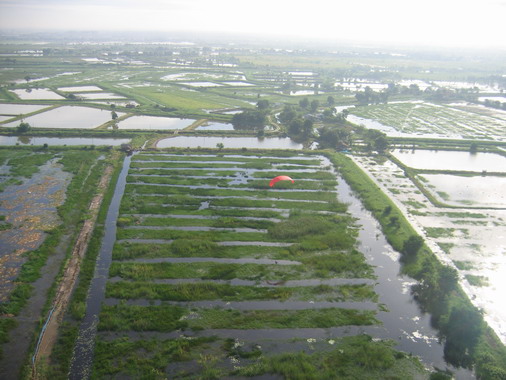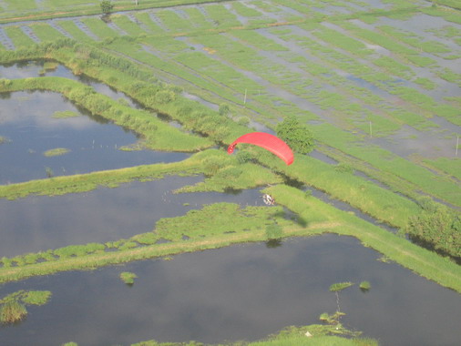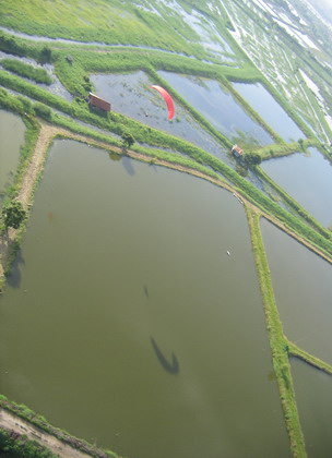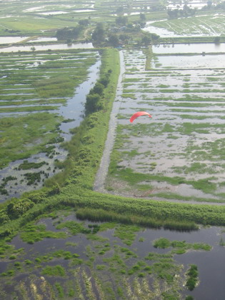พอผ่านหมู่บ้าน ครูทุย ก็บินโลว์พาส ไปตามท้องนา