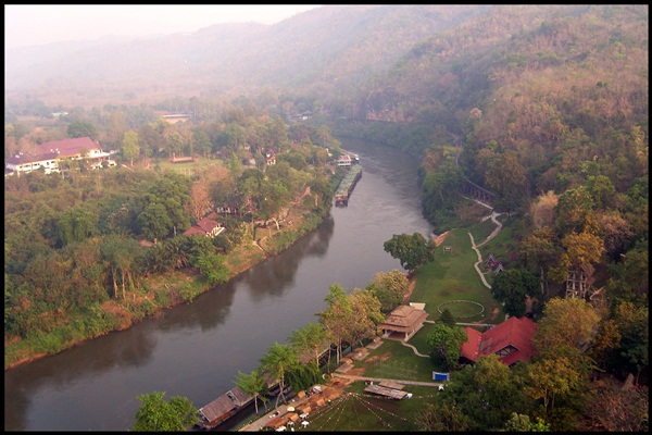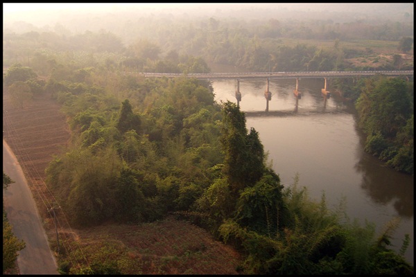 เห็นสะพานข้ามแม่น้ำ ก่อนจะถึงถ้ำกระแซ