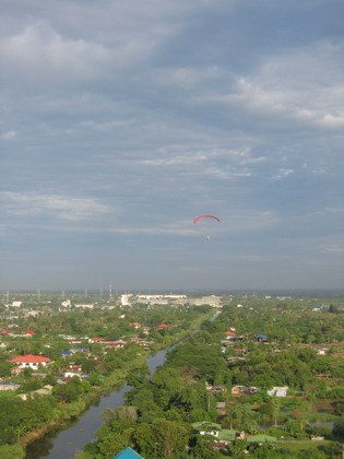 เช้าวันนี้ ( 24 ก.ย. 48 ) พวกเราโสธรร่มบิน บินเดินทางจากบางปะกง ไป คลอง 16 บางน้ำเปรี้ยว เป็นทริปสั้นๆ สนามบินที่พวกเราใช้ขึ้นบินประจำเปียกแฉะน้ำเจิ่งนอง เนื่องจากมรสุมหลายลูก สนามพนัสนิคม และ สนามกบ ( แถวคอมเพล็กซ์ ) ที่พวกนายตำรวจ ภ. จว. ฉะเชิงเทรา ใช้ฝึกซ้อมร่มบิน....น้ำเต็มจนเกือบถึงถนน เอา Jet ski มาเล่นจะเหมาะสุด