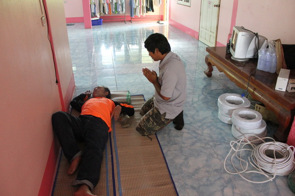 นี่ไงท่านอนเจ้าพ่อเล็ก มือขวาสีไว้พ่นผนัง มือซ้ายน้ำมันหยอดโซ่ กอดเหล้าไว้ข้างกาย(แบ็ค) กรนเล็กน้อยเพื่อสร้างอนาเขต