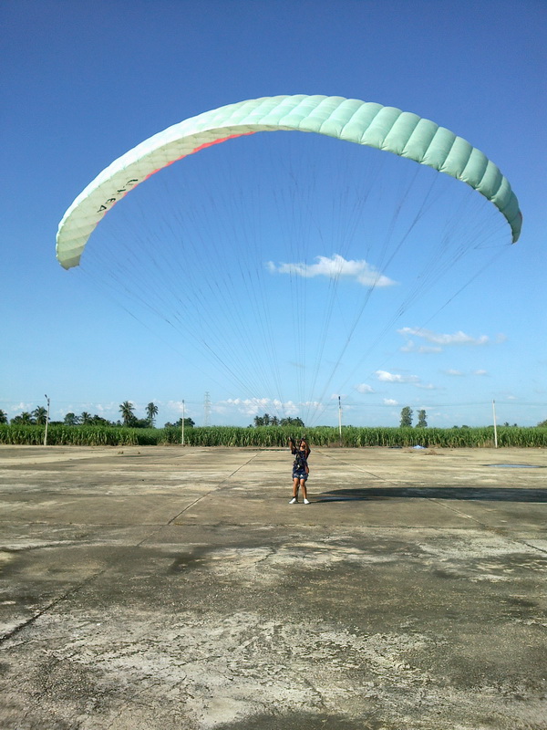 ทั้งคน ร่ม เครื่อง เสียหาย 0% อ้อมีเครื่องตรวจสอบแล้วปรากฏว่าลูกสูบทะลุ เปลี่ยนลูกสูบก็บินได้ใหม่ทันที ภาพนี้บนลานกระโดดร่มร่อนเขาใหญ่