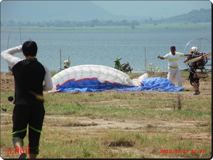 ขอลงย้อนหลังไปเมื่อวันเสาร์ที่ผ่านมา ที่ลานตากข้าวใกล้เขาใหญ่ เดิมบางฯ มี อมร จีรศักดิ์ พิชัย แดง นัส ศิลป์ เดฟ ขึ้นกันหมดทุกร่ม แต่อากาศไม่ดีนักดุ๊กดิ๊กมือตลอดเวลา คว้ากล้อง 3 ครั้งต้องปล่อยกล้องคว้าคอลโทรลทั้ง 3 ครั้ง เลยไม่ได้ภาพข้างบน มีแต่เดฟใช้โทรศัพท์ถ่ายได้หลายรูป ภาพแรกร่มแดงลงสนามผิดที่ ไปลงยอดต้นจามจุรี