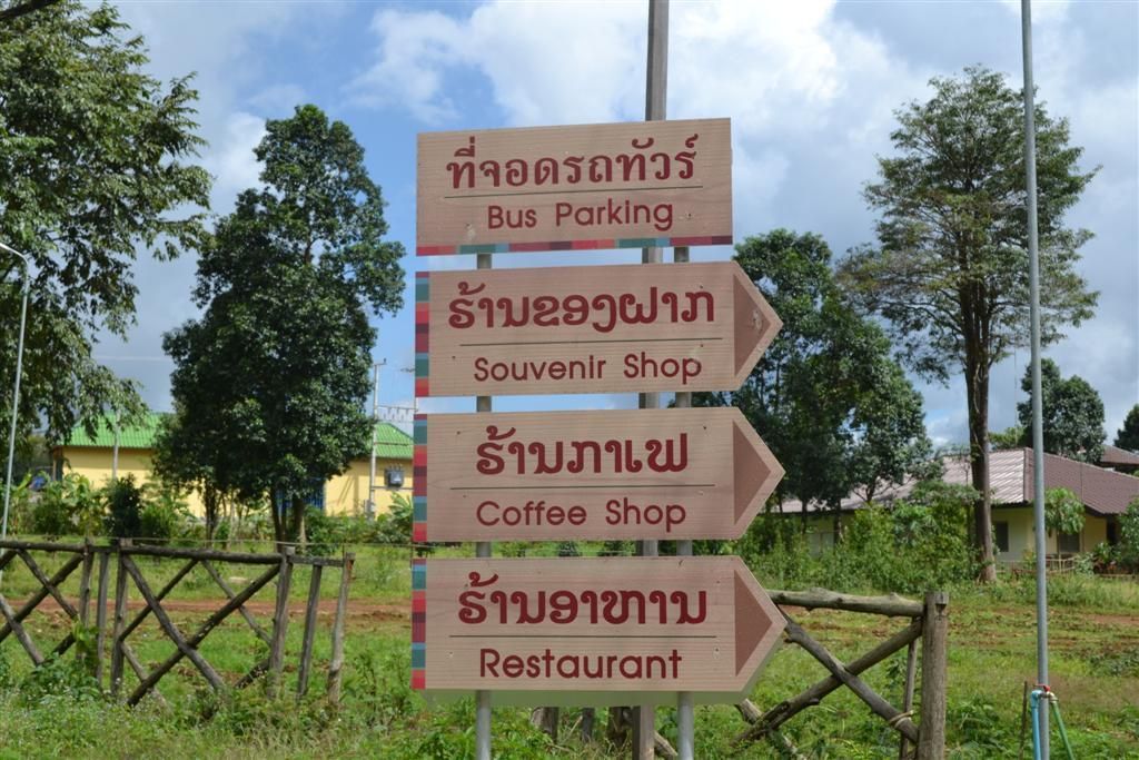 พี่หมวดตกงาน ไม่ทราบว่าที่ไหน ไทย หรือ ลาว หรือ อังกฤษ เพราะเห็นว่ามีทั้งสามภาษาเลย แต่หลังจากที่พิจารณาแล้ว น่าจะเป็น ไทย เพราะป้ายอันบนสุดบอกว่า ที่จอดรถทัวร์ ใช่ป่าวพี่หมวดตกงาน