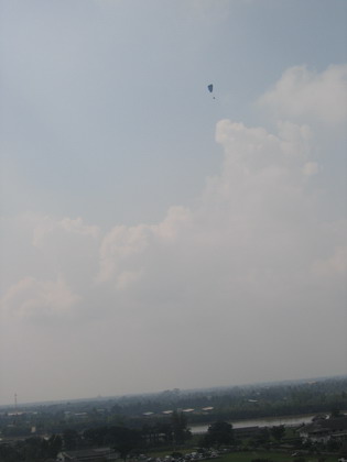 พี่หงา ฤทธิรงค์ U-T91 มาบินโชว์ตัวก่อนผมชั่วโมงกว่า กำลังไต่ความสูงขึ้นไปเหยียบก้อนเมฆ พี่หงามองลงมาคงเห็นแม่น้ำบางปะกงเล็กเท่าเส้นก๋วยเตี๋ยว