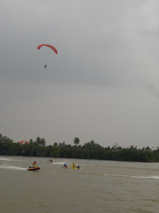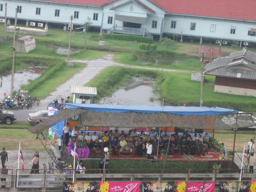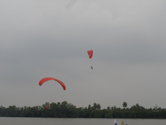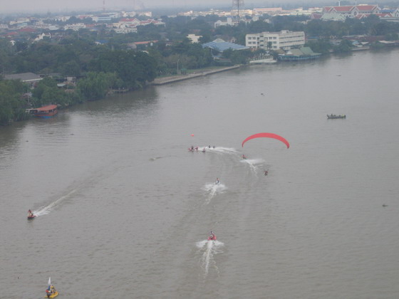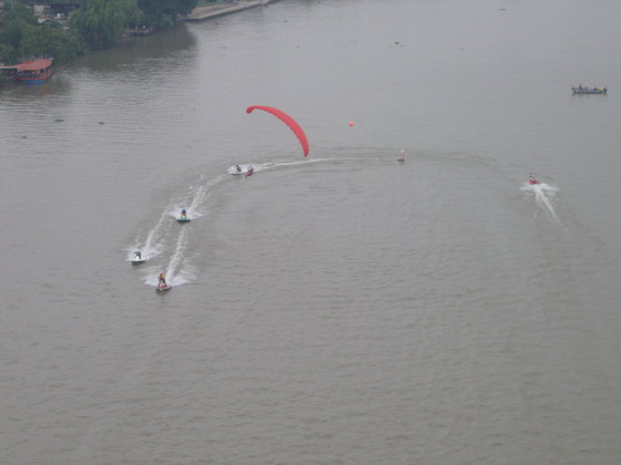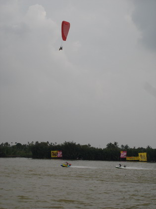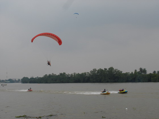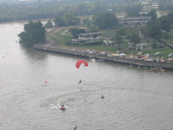 ท่านประธานฯและแขกผู้มีเกียรติซมการแข่งเรืออย่างสนุก โดยมีร่มบินบินโชว์เพิ่มสีสันให้การแข่ง เป็นไปในแบบตื่นเต้นเร้าใจไปพร้อมๆกัน ครับ