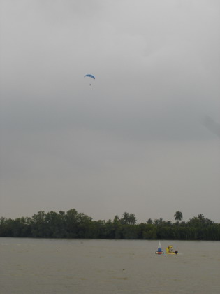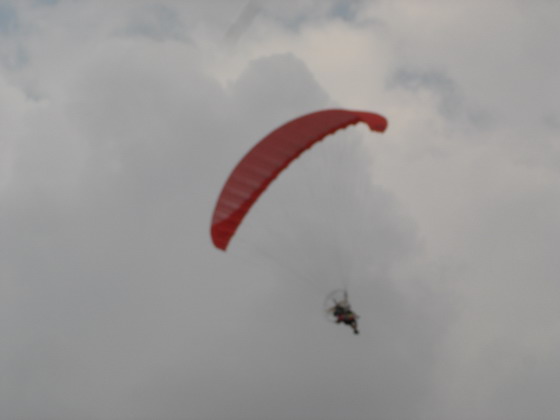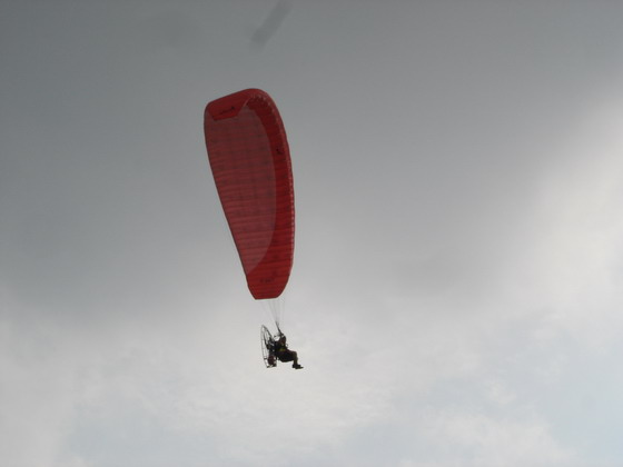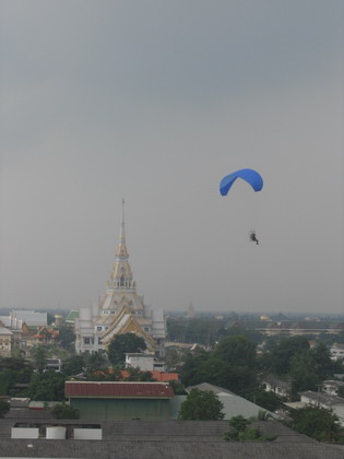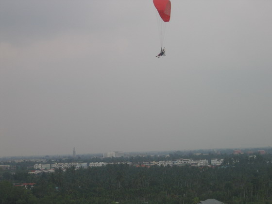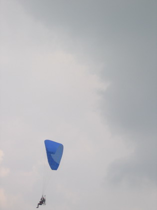 ผมมองขึ้นไปเห็นน้องต้น บินอยู่สูง ท่ามกลางท้องฟ้าที่มืดครึ้มลง ลมเริ่มแรงขึ้น ร่มเอลเล่ย์มีอาการบ้างเล็กน้อย ยังบินต่อได้สบาย.....แต่ประสบการณ์และชั่วโมงบิน บอกผมว่า พายุฝนกำลังจะมาในไม่ช้านี้ เวลาแห่งการบิน เพื่องานนมัสการหลวงพ่อ สำหรับปีนี้ ใกล้จะสิ้นสุดลงแล้ว
