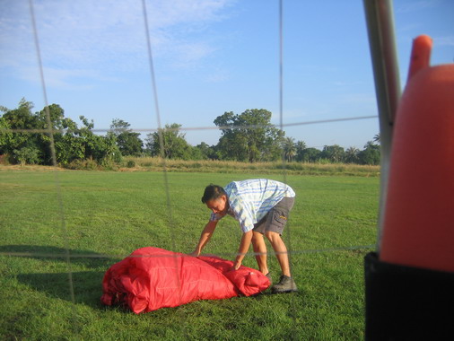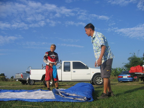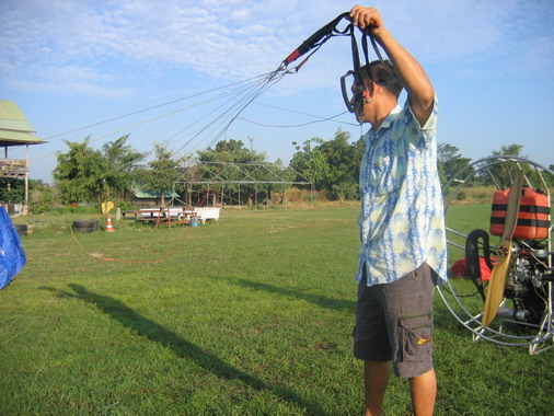 ครูทุยแก้สายร่มให้เรียบร้อย รวบเก็บให้เป็นระเบียบ บินไฟร์ทหน้าจะได้กางสะดวกรวดเร็วปลอดภัย ครับ