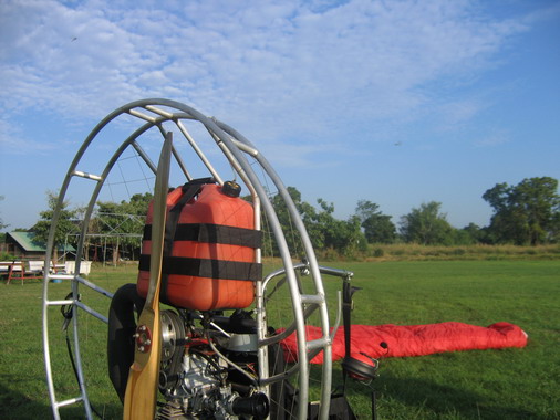 เครื่องพารามอเตอร์ ของน้องโบ้ ยูบี-28 เป็นเครื่องโซโล ใช้บาร์แข็ง ถังน้ำมันอยู่ล่าง รูปร่างสีสัน สวยงามดีครับ