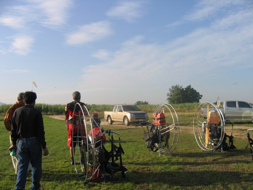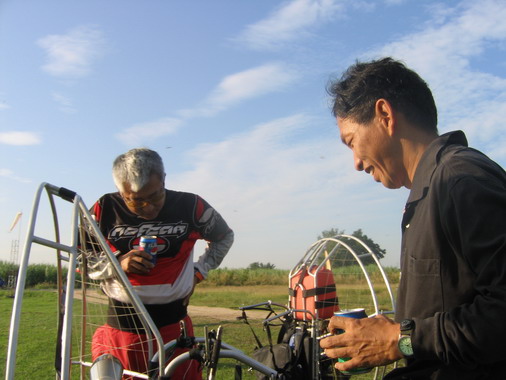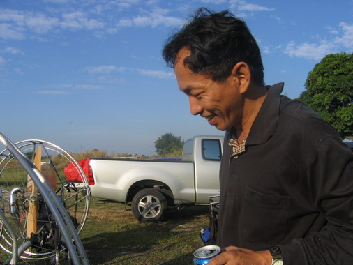 Ground support ของทีมโสธรร่มบินมาแล้วครับ ตกลงกันไว้ว่า...ให้สแตนด์บายรออยู่ที่สนามดินแดง จะบินกลับไปเอง แต่วันนั้นลมแรง หมดสิทธิ Ground support จึงต้องดำเนินตามแผนที่สอง...มารับกลับ