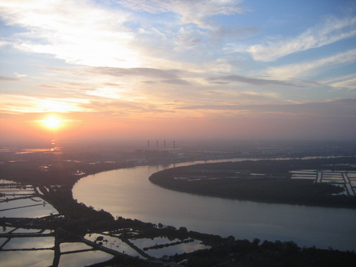 ในภาพ แม่น้ำบางปะกงไหลออกปากอ่าวทะเล