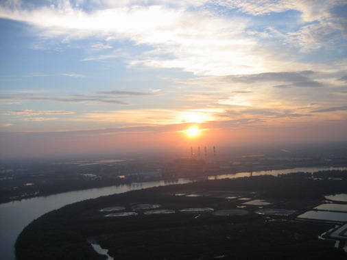 มองทางซ้าย เห็นปล่องทั้ง 4 ของโรงไฟฟ้าก๊าซธรรมชาติ บางปะกง ใหญ่ที่สุดในเอเซีย
