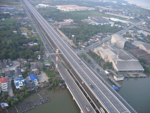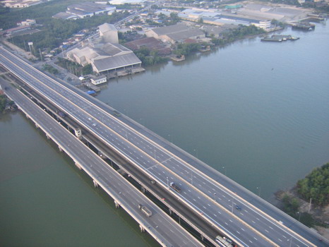 ร่มของคุณต่อ บินอยู่ช่วงโค้งทางด่วนเบื้องหน้า....ทัศนียภาพโดยรอบทางด่วน