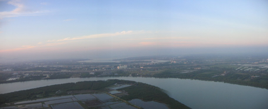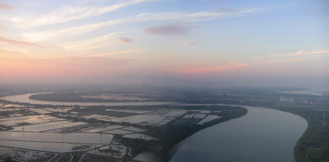 ภาพพาโนราม่า โค้งน้ำบางปะกง ไหลเป็นตัว S ไปออกปากอ่าวทะเล