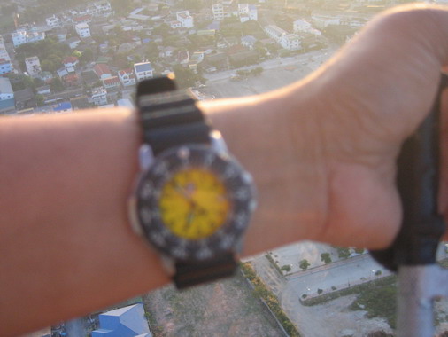 ดูนาฬิกา 06.55 น. แสดงว่า บินจากบางปะกงมาถึงชลบุรี ใช้เวลาเพียง 25 นาที....ครูทุยบอกครั้งแรกที่บินไปบางแสน วันนั้นอากาศดีมาก ไม่ได้ลมแรงเหมือนวันนี้ บินแผล็บเดียวถึง ครับ