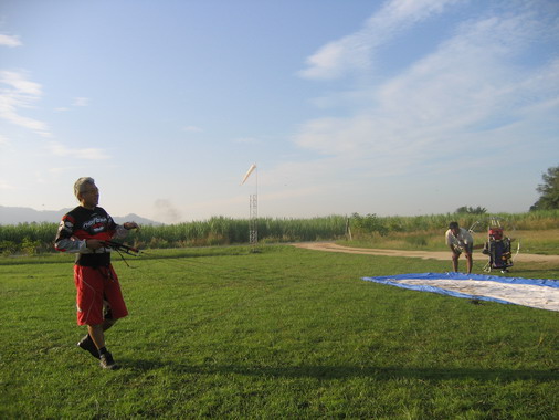 คุณโบ้ ( น้องโบ้ ) หนุ่มหล่อน้ำใจงามแห่งสนามบางแสน บินร่มบินแทบทุกวัน ฝีมือพัฒนาจนหยุดไม่อยู่แล้ว วันนั้นนำร่ม Speedo ไซส์ 27 มาบินทดสอบเล่นแต่เช้าตรู่ ต้อนรับพวกเราอย่างอบอุ่นเหมือนเดิม....ขอบคุณมากครับ