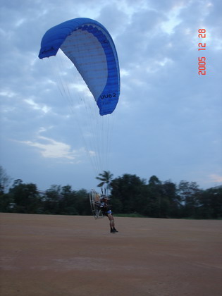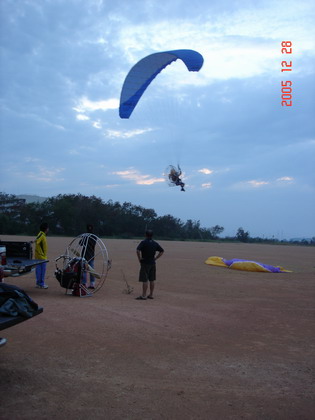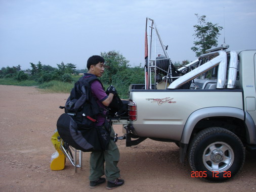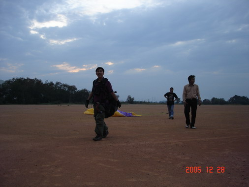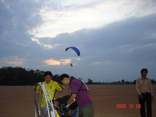 มีใครจะเชื่อว่า เย็นวันที่ 28 ธันวาคม 2548 ก่อนวันปีใหม่ 3 วัน ราวๆ 16.30 น. คุณวิวัฒน์ หรือ โปรวิวัฒน์แห่งร่มร่อนได้บุกมาเยือนถึงถิ่นโสธรร่มบิน บางปะกง จังหวัดฉะเชิงเทรา....ตามด้วยคุณอาร์ท แห่งชมรมร่มบินกรุงเทพ และคุณแอ๊ะแห่งภูเก็ต โดยปกติคุณวิวัฒน์จะมีรูปให้พวกเราได้ดูในแนวร่มร่อน ไม่ว่าจะบินที่ภูเรือจังหวัดเลย , เทรนนิ่งฮิลล์ ระยอง และต่างประเทศที่เพิ่งกลับมา คือ นิวซีแลนด์ ภาพสวยๆโดยมากที่ลงในเวปร่มร่อนเป็นภาพที่คุณวิวัฒน์ถ่ายด้วยตัวเองทั้งสิ้น เรื่องร่มร่อนนั้นคุณวิวัฒน์เก่งอยู่แล้ว แต่มาถึงร่มบิน ยังไม่มีใครเคยเห็นฝีมือคุณวิวัฒน์บิน โดยมากคนที่เล่นร่มร่อน มักจะไต่ขึ้นมาจากร่มบิน พอมาเล่นร่มร่อนแล้ว มันสนุกและท้าทายกว่า โดยมากทิ้งร่มบินไปเลย....ชมรมร่มบินกรุงเทพเป็นชมรมใหญ่ที่มีสมาชิกมากมาย บินอยู่แถวสนามกันตนา ศาลายา มีคุณธนากรเป็นเจ้าสำนักฯ มีพี่แต๋วยอดฝีมือแห่งทีมรถแข่งยามาฮ่าอันเกรียงไกร เป็นผู้ดูแลเครื่องยนต์ นับเป็นเกียรติที่พวกเราจะได้เห็นฝีมือและแนวทางการบินของคุณอาร์ทหนึ่งในชมรมร่มบินกรุงเทพ ว่าจะมีขั้นมีตอนอย่างไร ให้พวกเราได้ศึกษา