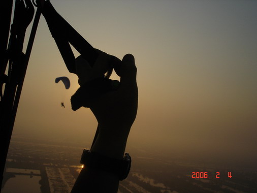 ข้ามเสาไฟฟ้ามาได้ เหลียวไปมอง ไม่เห็นคุณต่อ ????? เลยดึงสายคอนโทรล ให้ร่มเลี้ยวกลับไป เห็นคุณต่อ กำลังไล่มาห่างๆครับ ( ถ่ายย้อนแสง )