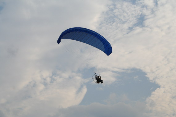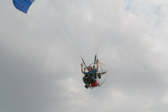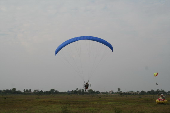ลมแรง ขึ้นร่มในท่า Forward ครับ พอร่มขึ้น มันจะฉุดให้เราหงายหลัง อย่าไปฝืนสู้นะครับ เดินถอยหลังช่วยเลยครับ พอร่มตรงหัวก็ Half สายคอนโทรลไว้ เร่งเครื่องส่ง พลางคืนสายคอนโทรลอย่างช้าๆ แค่เดินก้าวสองก้าว ก็ลอยแล้วครับ