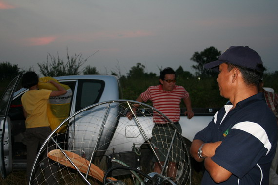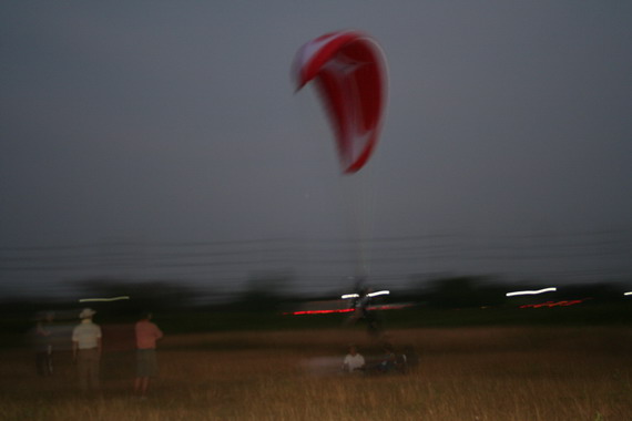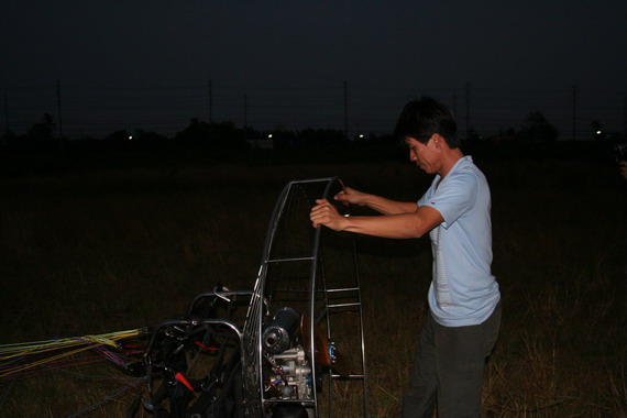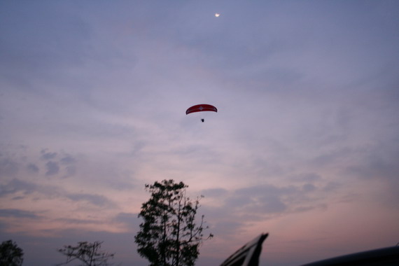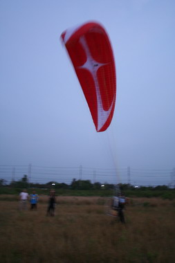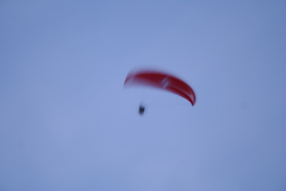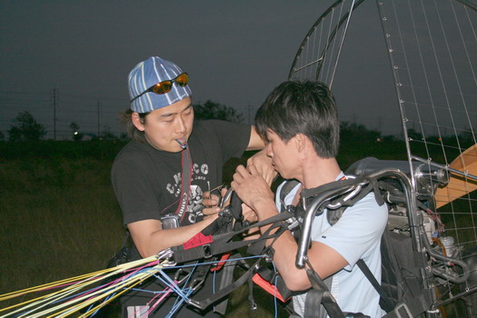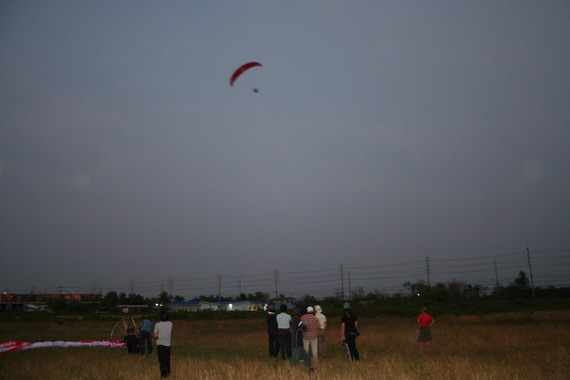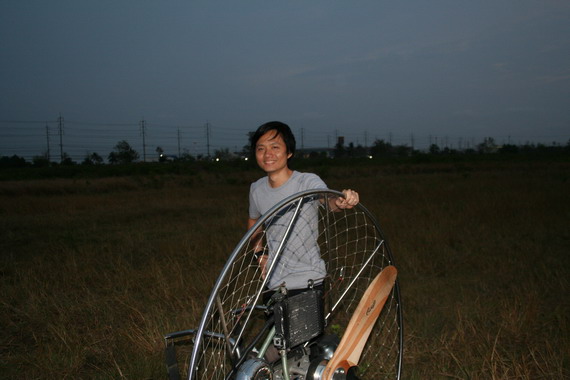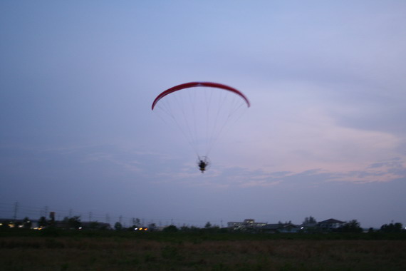 ดึงร่มขึ้นในท่า Reverse พอร่มตรงหัว คุณอั๋น ก็พลิกตัวกลับ หันหน้าทวนลม กำคันเร่ง เสียงเครื่อง Simonini กลบเสียงลมแรงได้สนิท.....