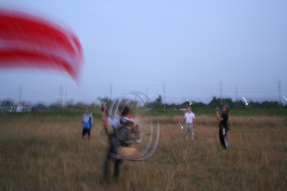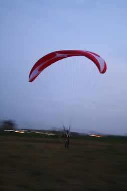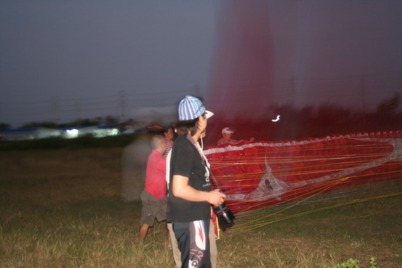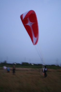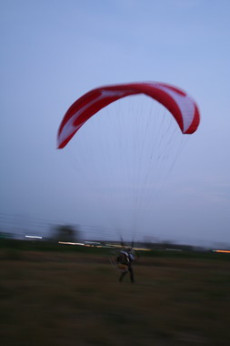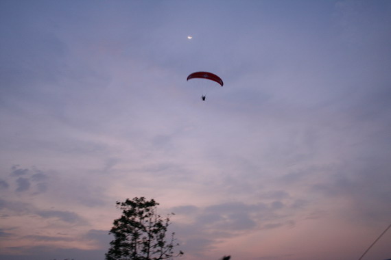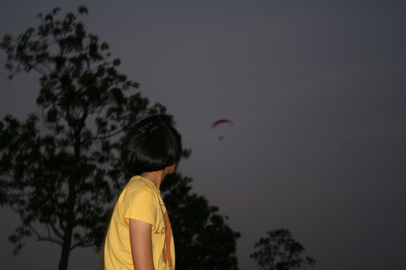 วิ่งไม่กี่ก้าว ก็ลอยแล้วครับ ท้องฟ้าเริ่มมืดสนิท สังเกตไฟตามบ้าน