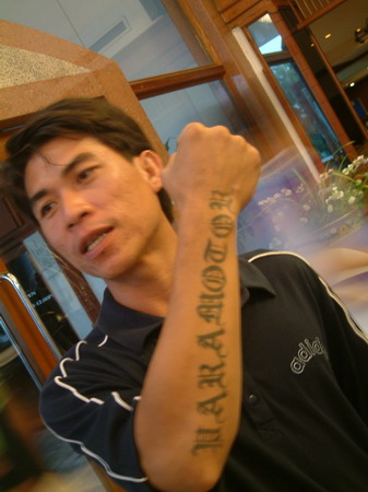 คุณอั๋น ชอบร่มบินเป็นชีวิตจิตใจ ครับ สังเกตที่แขน คุณอั๋น สักคำว่า PARAMOTOR ตัวเบ้อเริ่ม ไว้ข้างแขน ยกนิ้วให้เลย ครับ