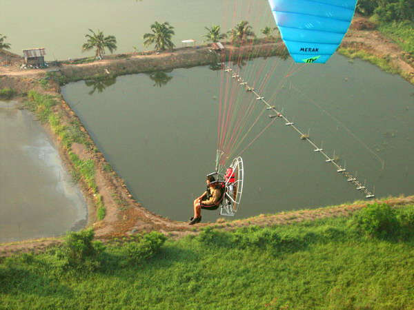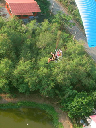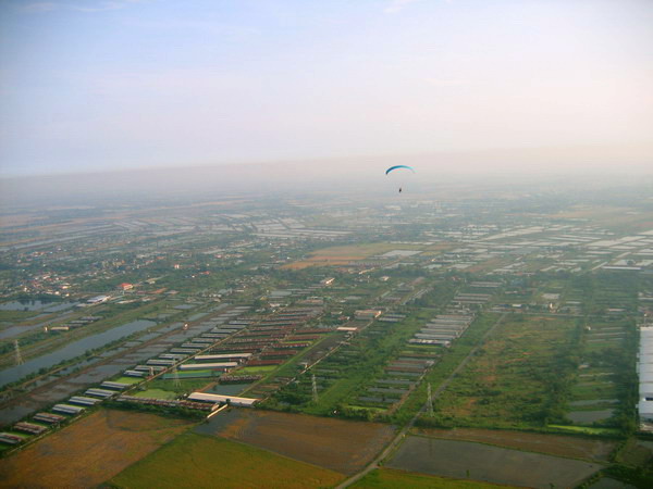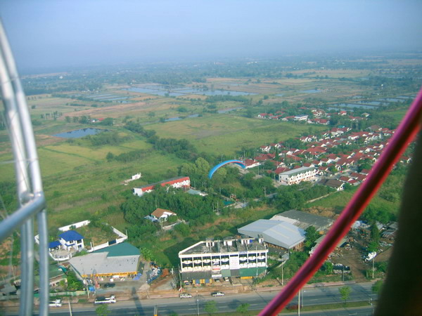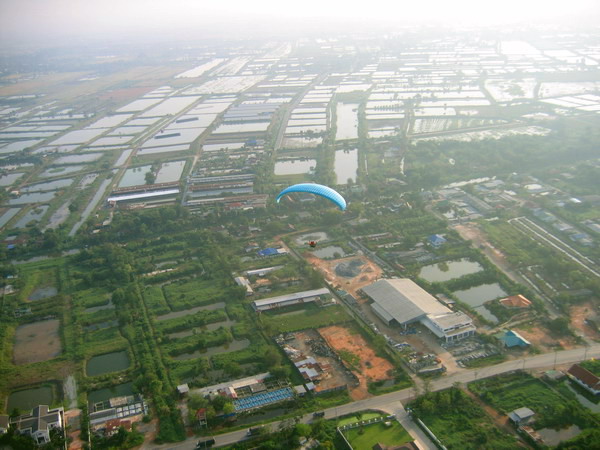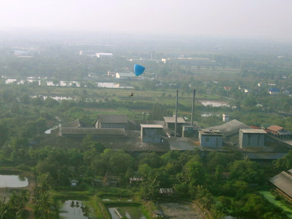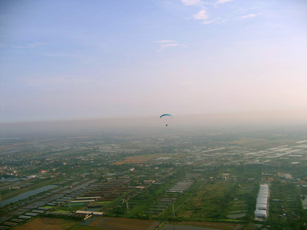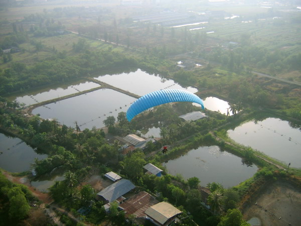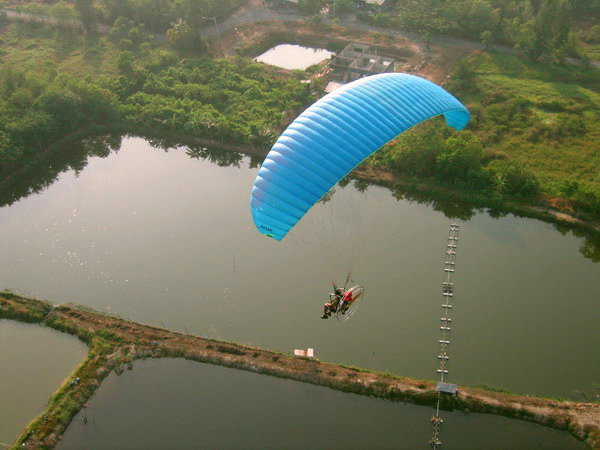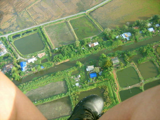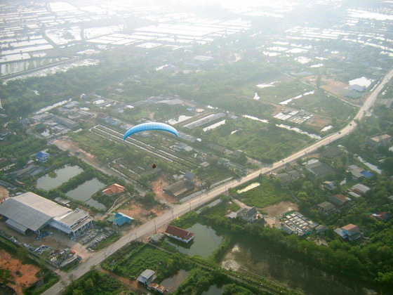พอบินข้ามเสาไฟฟ้าแรงสูง ผมกดปุ่ม....ดับเครื่อง..เอาหูฟังออก ..ลมเฉียดหู หวีดหวิว เป็นอิสระ ปล่อยให้ร่มร่อนตามครูทุยไป
