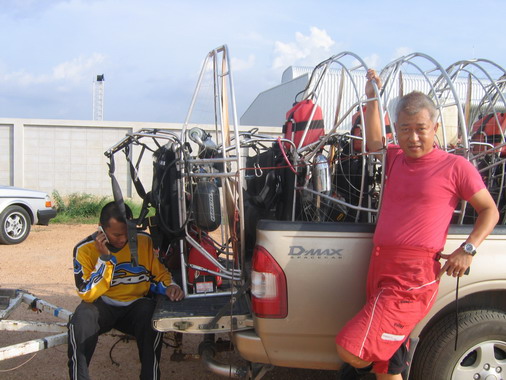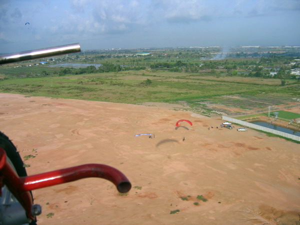 เช้าวันนี้ เสาร์ที่ 29 เมษายน 49 ผมบินด้วยสามล้อ สำรวจพื้นที่บางปะกง ริมแม่น้ำบางปะกง ดูพื้นที่ๆถมแล้ว เตรียมก่อสร้างโรงงาน ฯลฯ ครูทุย พาน้องพันธ์ บินสามล้อสองคน Tandem คุณต่อ น้องต้น ร่วมบินเดินทางสำรวจสนามที่ถมโดยรอบ