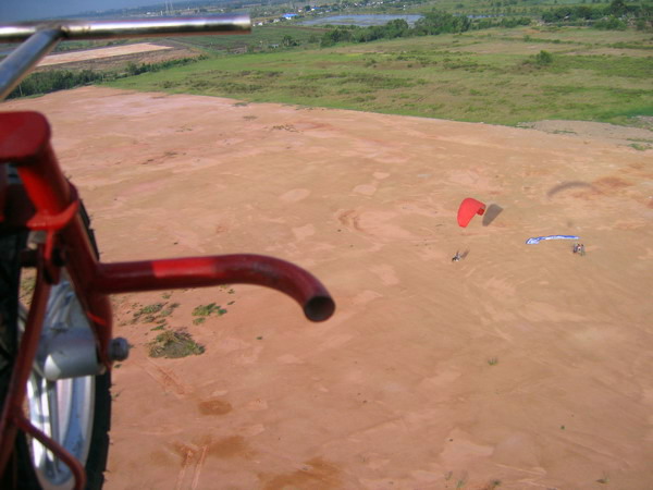พอสามล้อลอยตัว...น้องพันธ์ ก็บินเลียดเลี้ยวไปต่ำๆ แบบสบายๆ อย่างนี้ เรียกว่า ฝีมือ ครับ