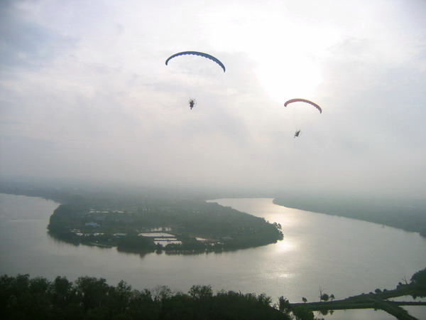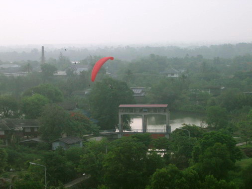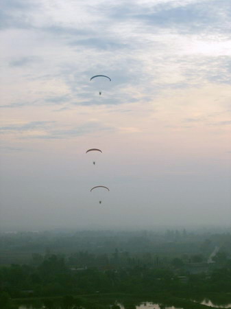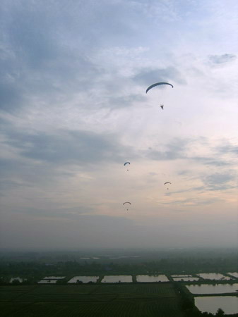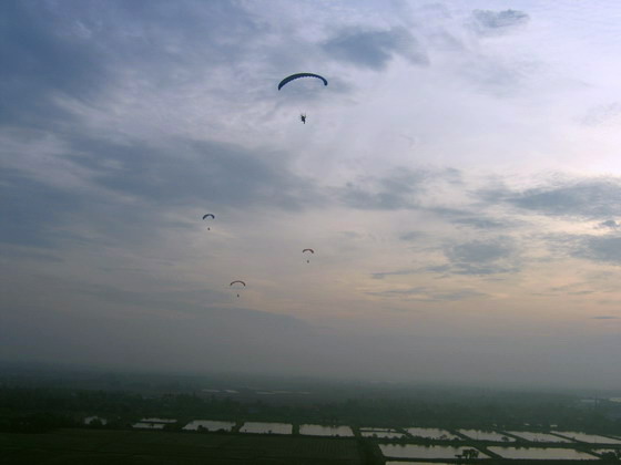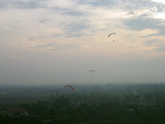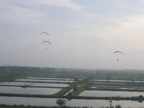มองสูงไปทางซ้าย เห็นคุณต่อ บินตามมาติดๆ ไม่โลว์พาสเล่น หรือ ขึ้น-ลง ฉวัดเฉวียน เหมือนเช่นเคย คงบินประหยัดน้ำมัน เพราะเดี้ยวนี้ใช้ Simonini เครื่อง 202 ซีซี เครื่องใหญ่ขึ้น แต่ถังเล็กลงแค่ 10 ลิตร เท่านั้น ครับ ( เมื่อก่อนใช้เครื่อง 170 ซีซี ถัง 20 ลิตร ครับ ) อิอิ