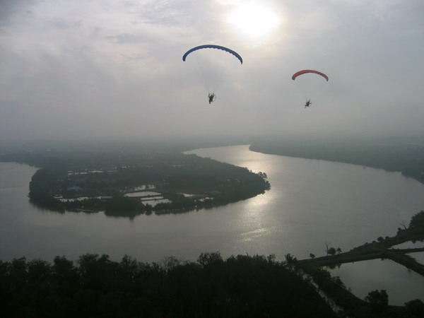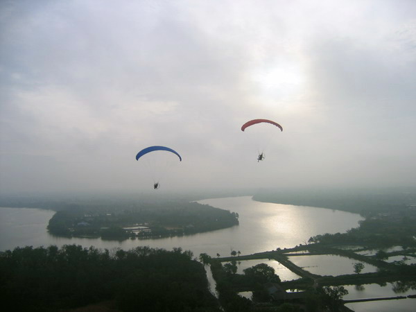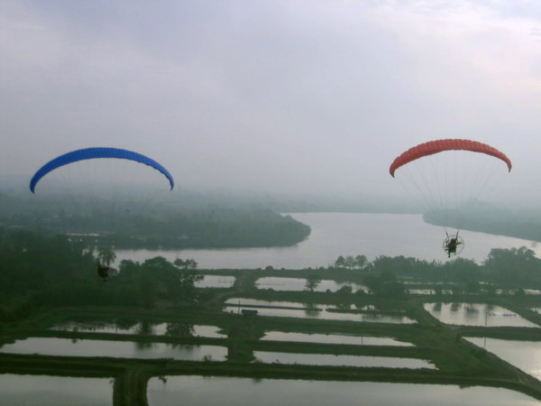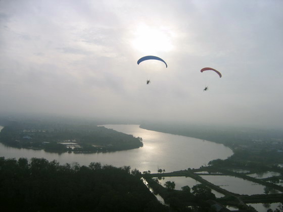 ภาพของ น้องต้น ซ้าย น้องพันธุ์ ขวา บินคู่กันข้ามแม่น้ำบางปะกง สวยงามมาก ครับ ใช้เป็นภาพต้นเรื่อง