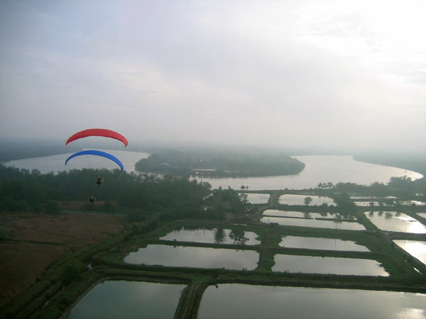 ถ่ายภาพจาก ร่มบิน ( Paramotor ) มาให้ชมกันครับ ภาพแม่น้ำบางปะกง รูปทรง เกีอกม้า ( Horseshoe )