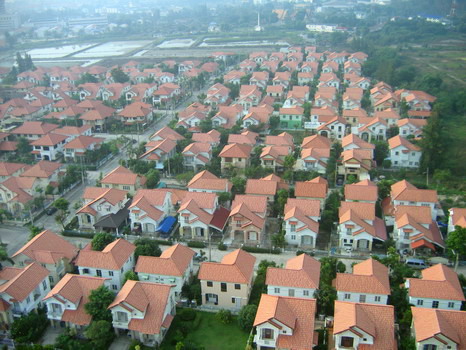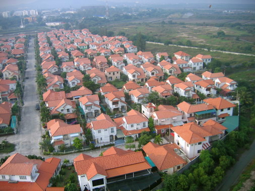 บินผ่านหมู่บ้านจัดสรร หลังคาสีสดใส ครับ