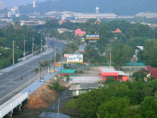 มองตรงไป เห็นโรงพยาบาลเอกชล ชลบุรี อยู่ไกลๆ