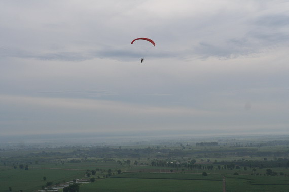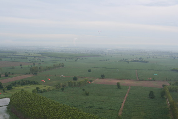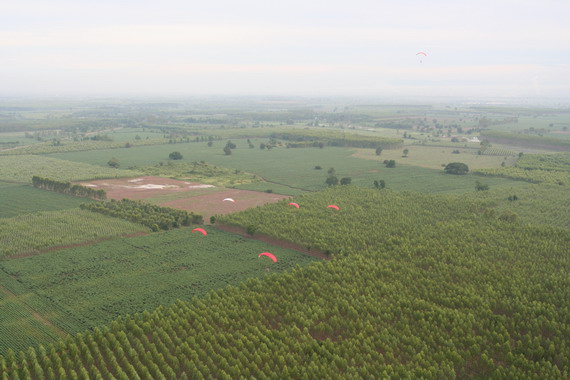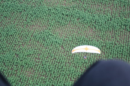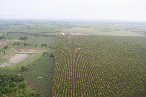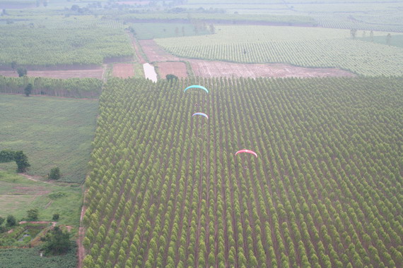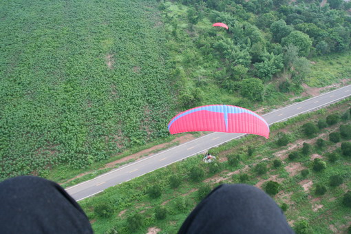 ร่ม 3 ตัวแรก ที่บินนำ บินอยู่เหนือป่ายูคาฯ ส่วนครูทุย เจ้าสำนักโสธรร่มบิน ร่มแดงทางซ้าย ใช้วิธี บินมุดต่ำหลบลม เลาะข้างป่ายูคาฯ จะได้ไปเร็วขึ้น