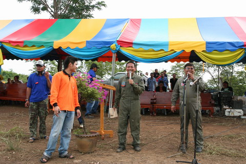 อาจารย์ จันฉาย ถือไมค์ไม่สวมแว่น....ประธานศูนย์กีฬาทางอากาศ เขาหว้าเอน ปราจีนบุรี ออกไมค์ช่วยให้การแข่งขันครอสคันทรี่มีสีสันมากขึ้นครับ