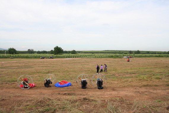 เครื่องพารามอเตอร์เรียงรายรอ...ท่านผู้ว่าฯ ประธานในพิธี มาเปิดการแข่งขันตามประเพณี ครับ