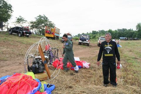 จากซ้าย คุณเสรัชต์ ชมรมรักการบิน พนัสนิคม ชลบุรี กับ ช่างแอด ชมรมร่มบินรามฯ 39